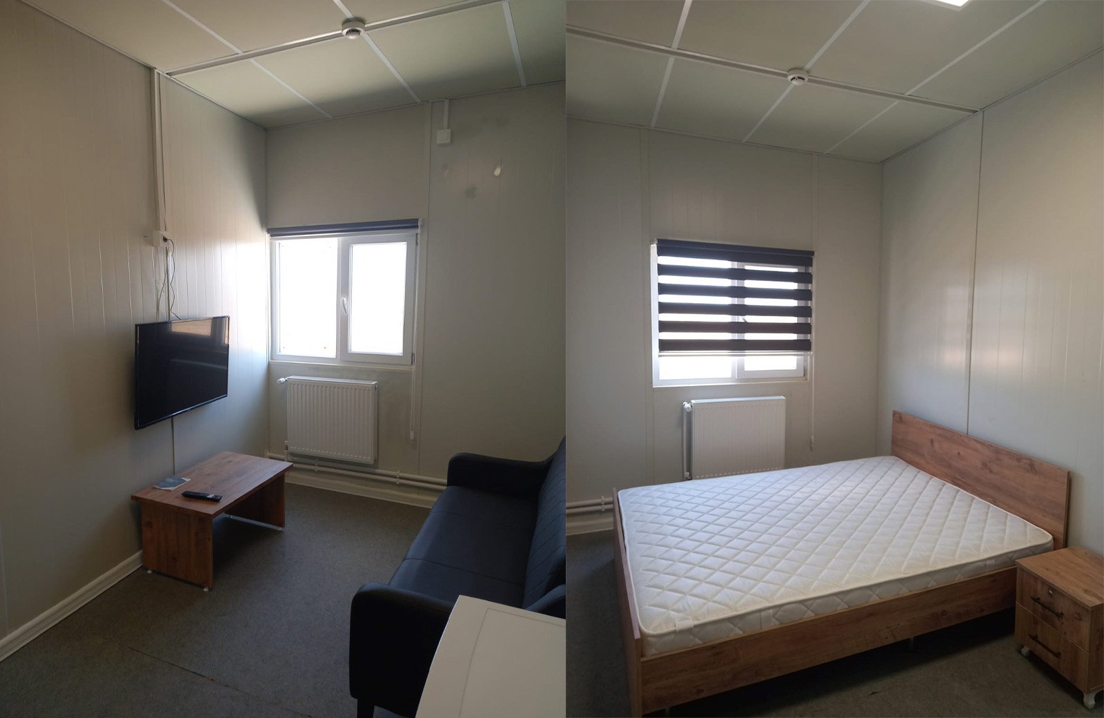 İşçi, Forman ve Mühendis Yatakhaneleri (3 Ayrı Bina): Personel gruplarının konfor standartlarına göre optimize edilmiş üç farklı konaklama binası. Isı ve ses yalıtımı en üst seviyede tutularak, zorlu çalışma saatleri sonrası huzurlu bir dinlenme ortamı sağlanmıştır.